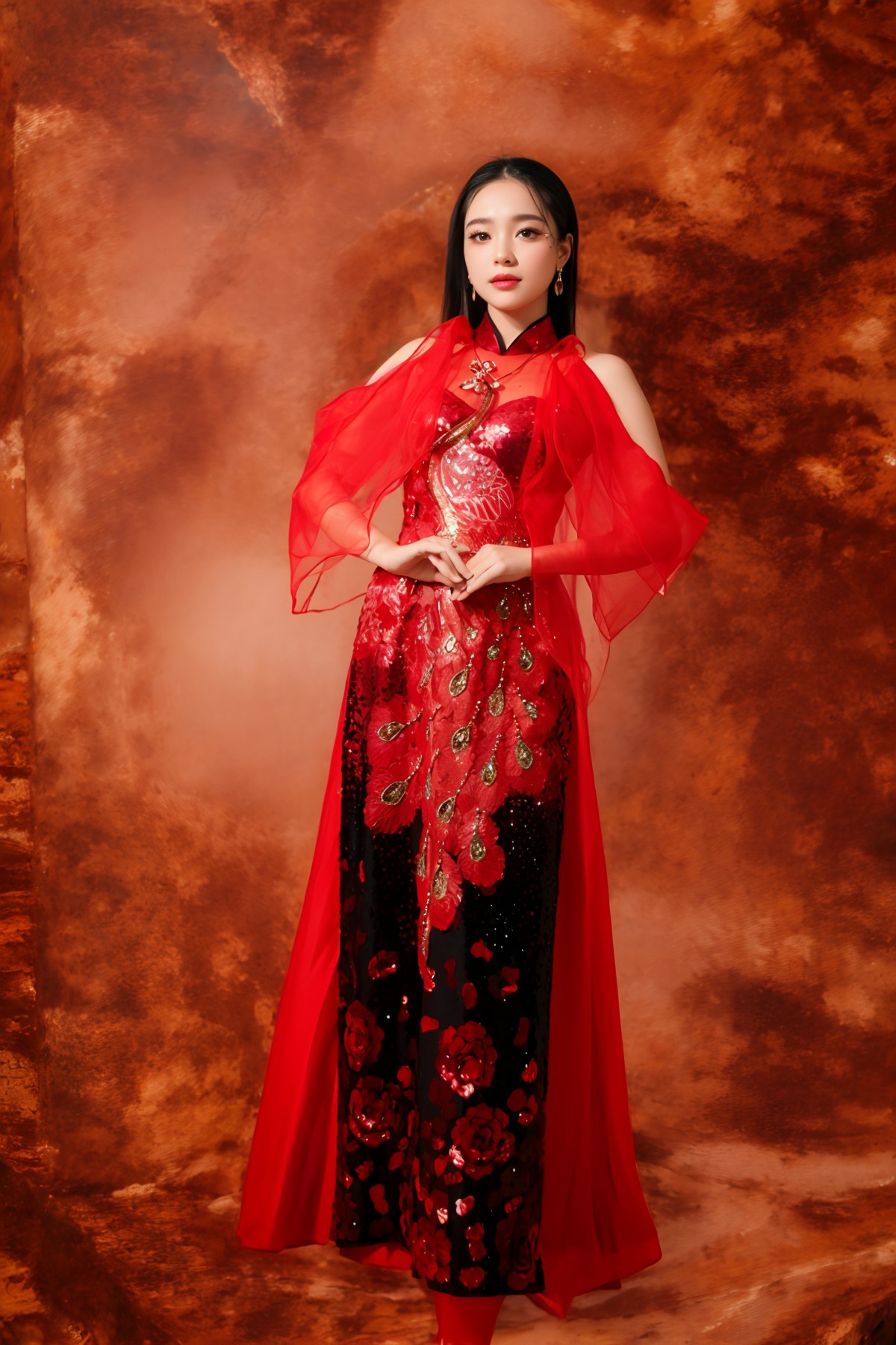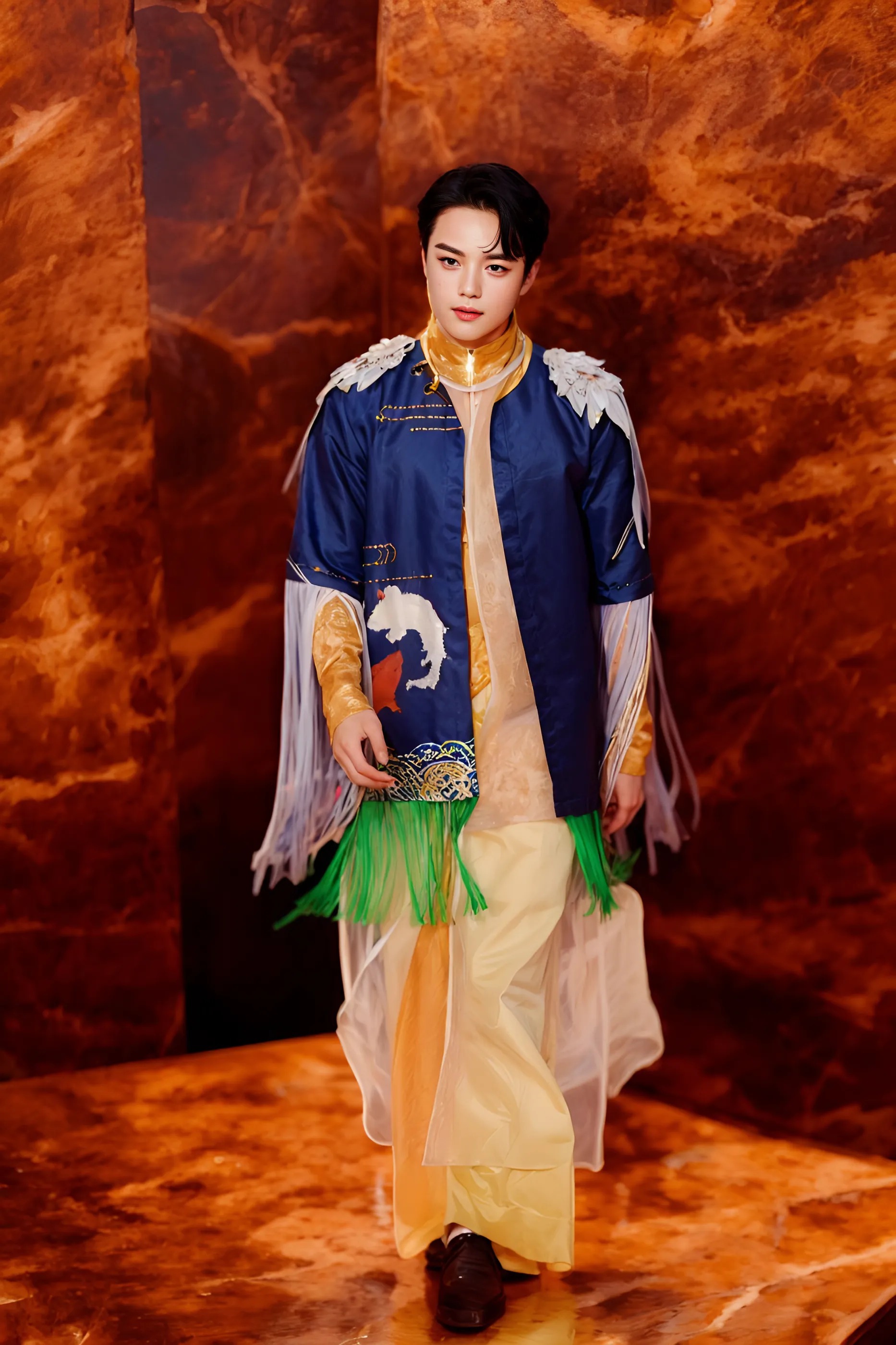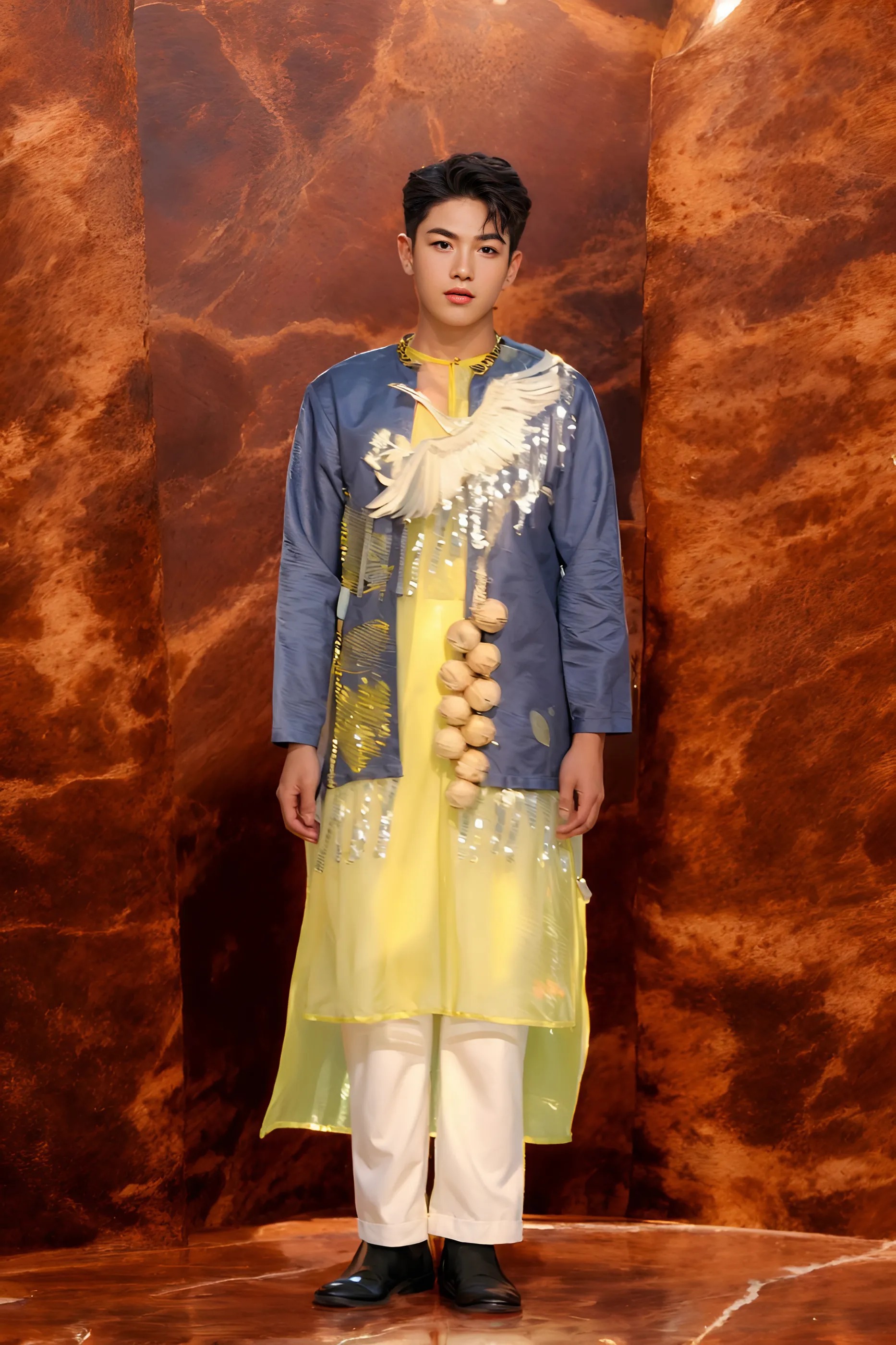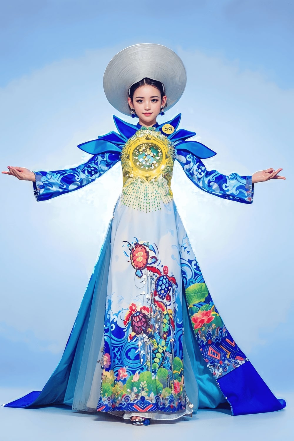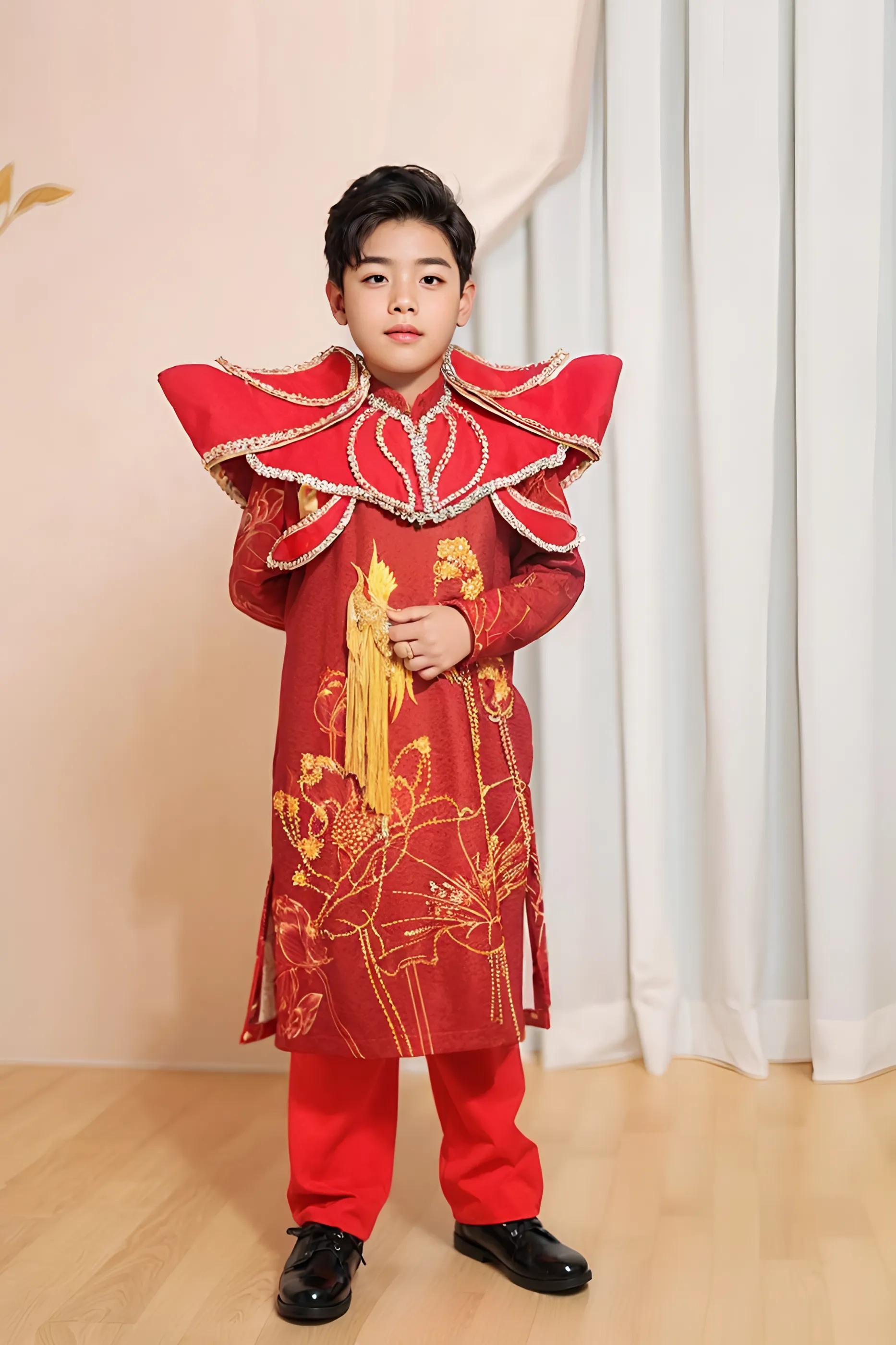 Điểm nhấn là các họa tiết long, lân, quy, phụng và các loài hoa, được in 3D sống động theo phong cách tranh thủy mặc. Tất cả tạo nên một tổng thể hài hòa, tôn vinh vẻ đẹp truyền thống Á Đông cùng hơi thở đương đại.