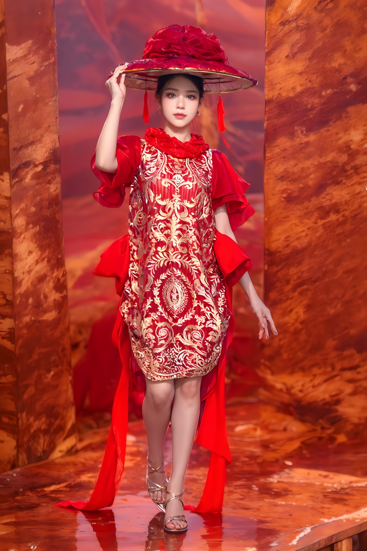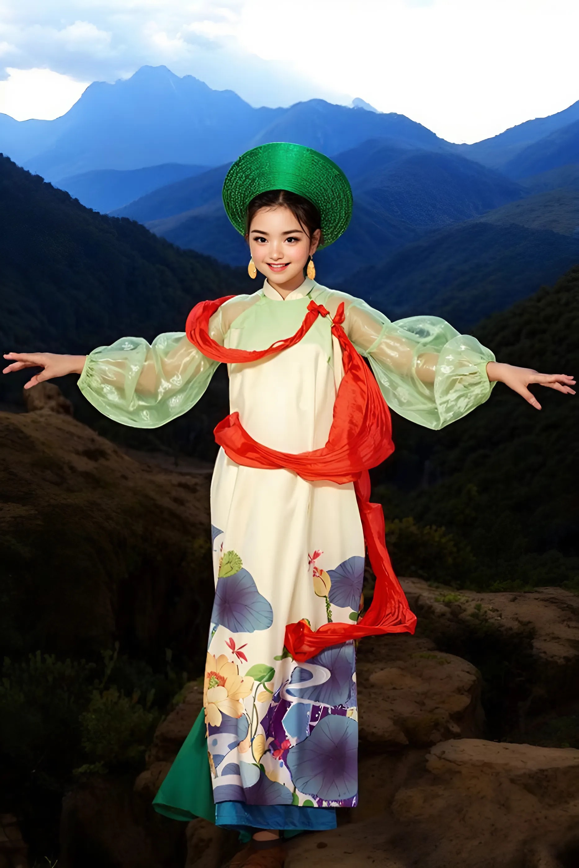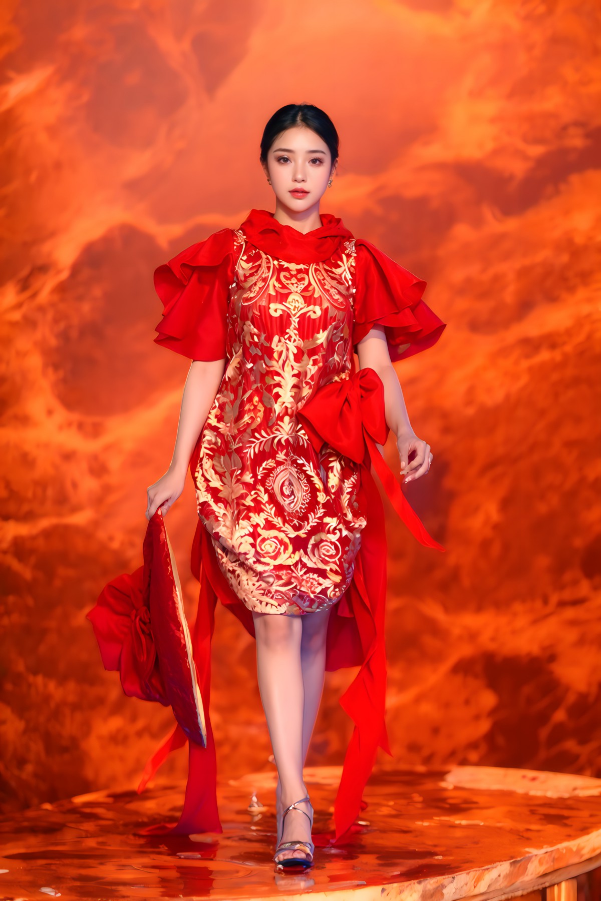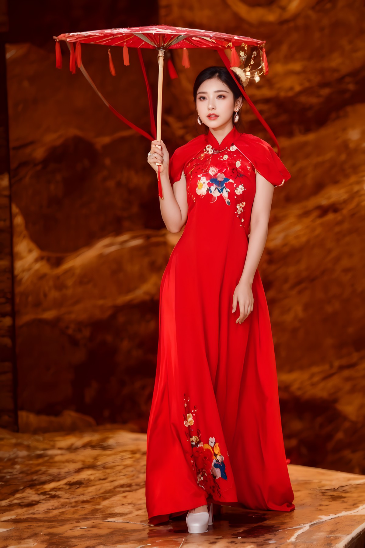 Điểm nhấn là các họa tiết long, lân, quy, phụng và các loài hoa, được in 3D sống động theo phong cách tranh thủy mặc. Tất cả tạo nên một tổng thể hài hòa, tôn vinh vẻ đẹp truyền thống Á Đông cùng hơi thở đương đại.