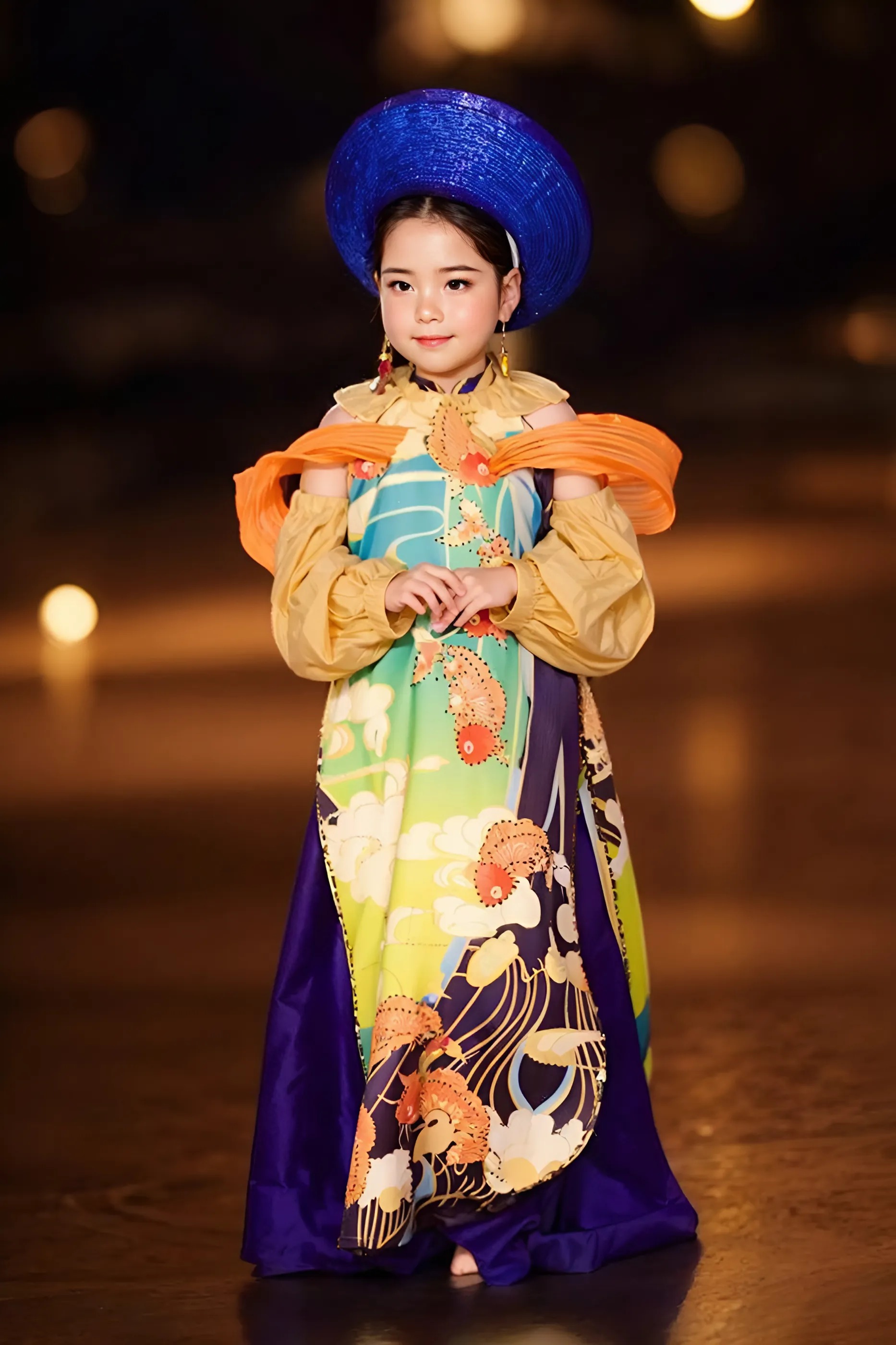 Bộ sưu tập "Á Đông Hòa Sắc" của nhà thiết kế Đinh Bách Đạt là sự kết hợp độc đáo giữa trang phục truyền thống và hiện đại. Sử dụng áo dài làm chủ đạo, các thiết kế được biến tấu với form dáng lộng lẫy, kết hợp chất liệu cao cấp.