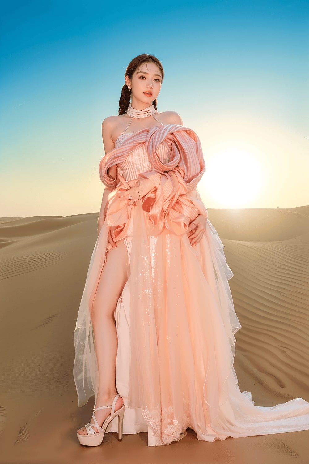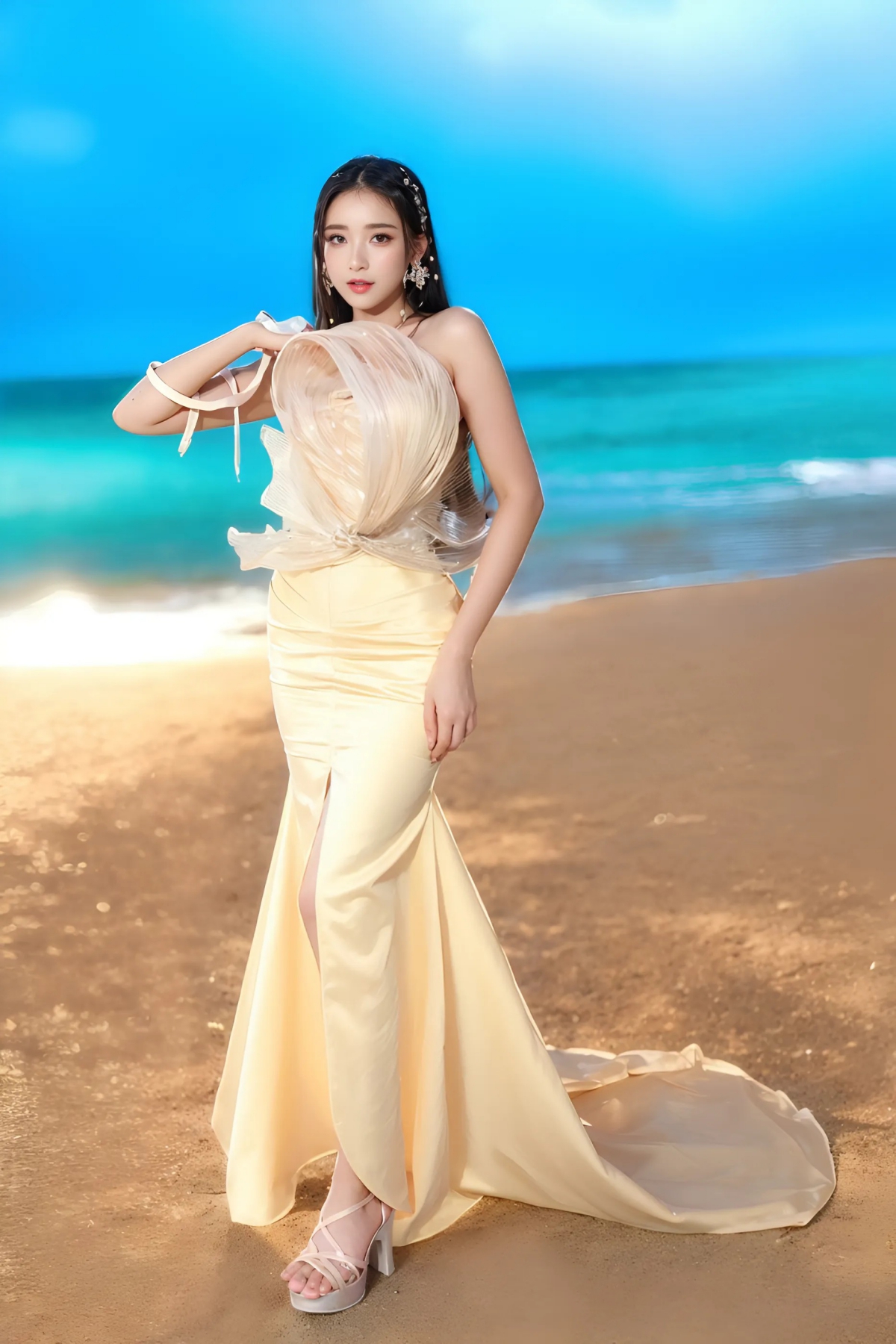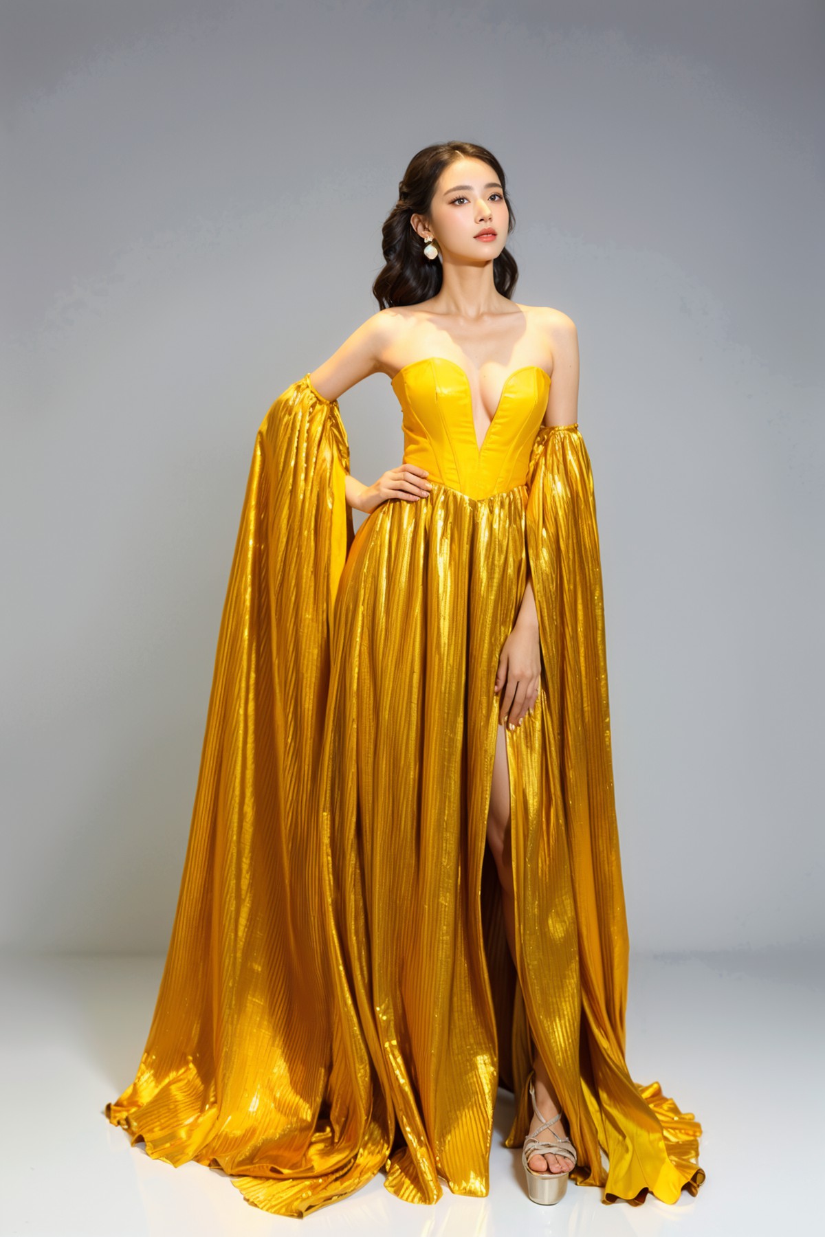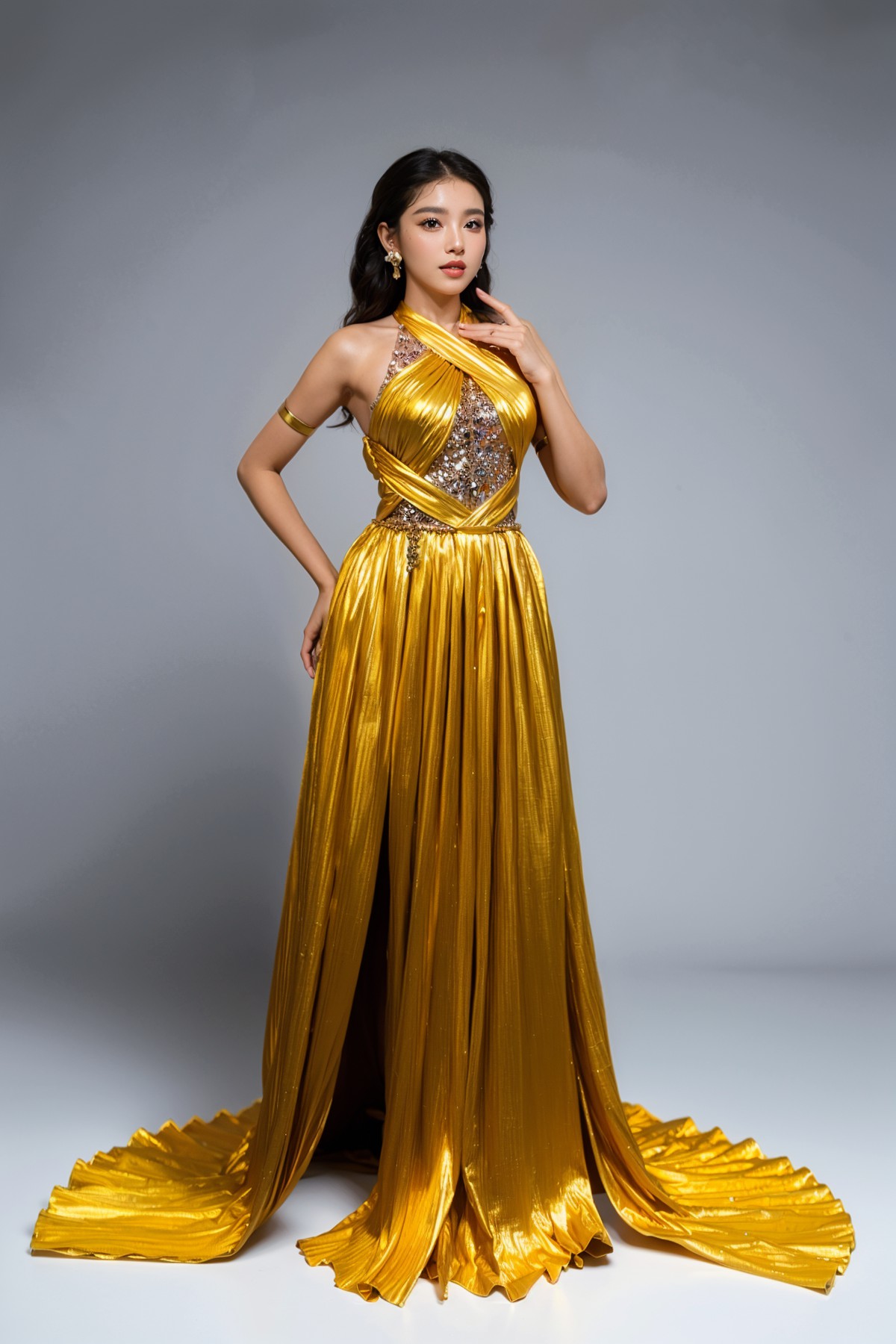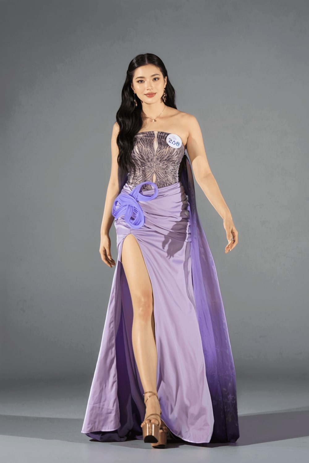 Các thiết kế nổi bật với phom dáng tinh xảo, sử dụng màu sắc sang trọng như vàng kim, xanh sapphire, cùng các họa tiết rồng, phượng được đính kết cầu kỳ. Bộ sưu tập tôn vinh vẻ đẹp kiêu sa và quyền quý của phái nữ.
