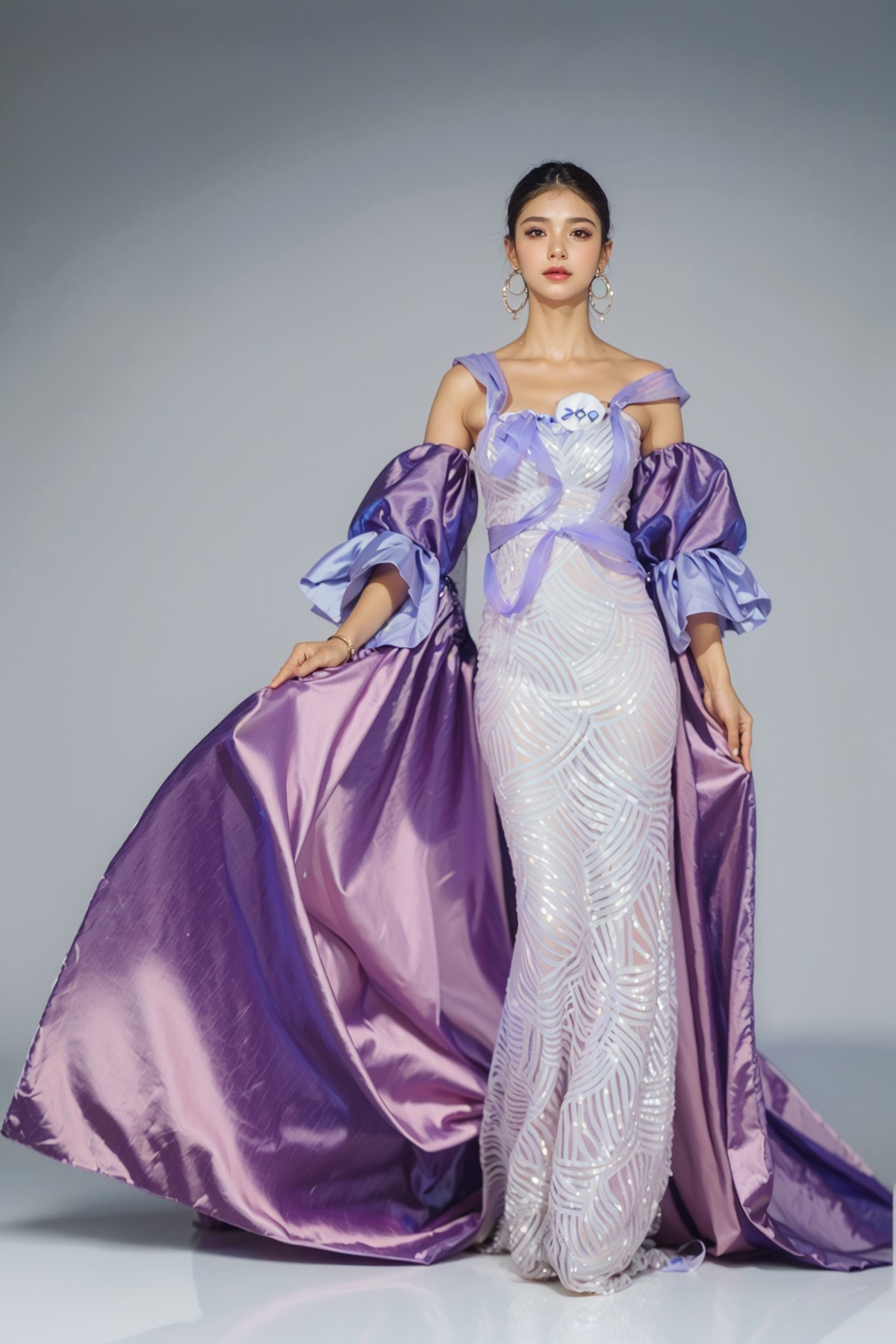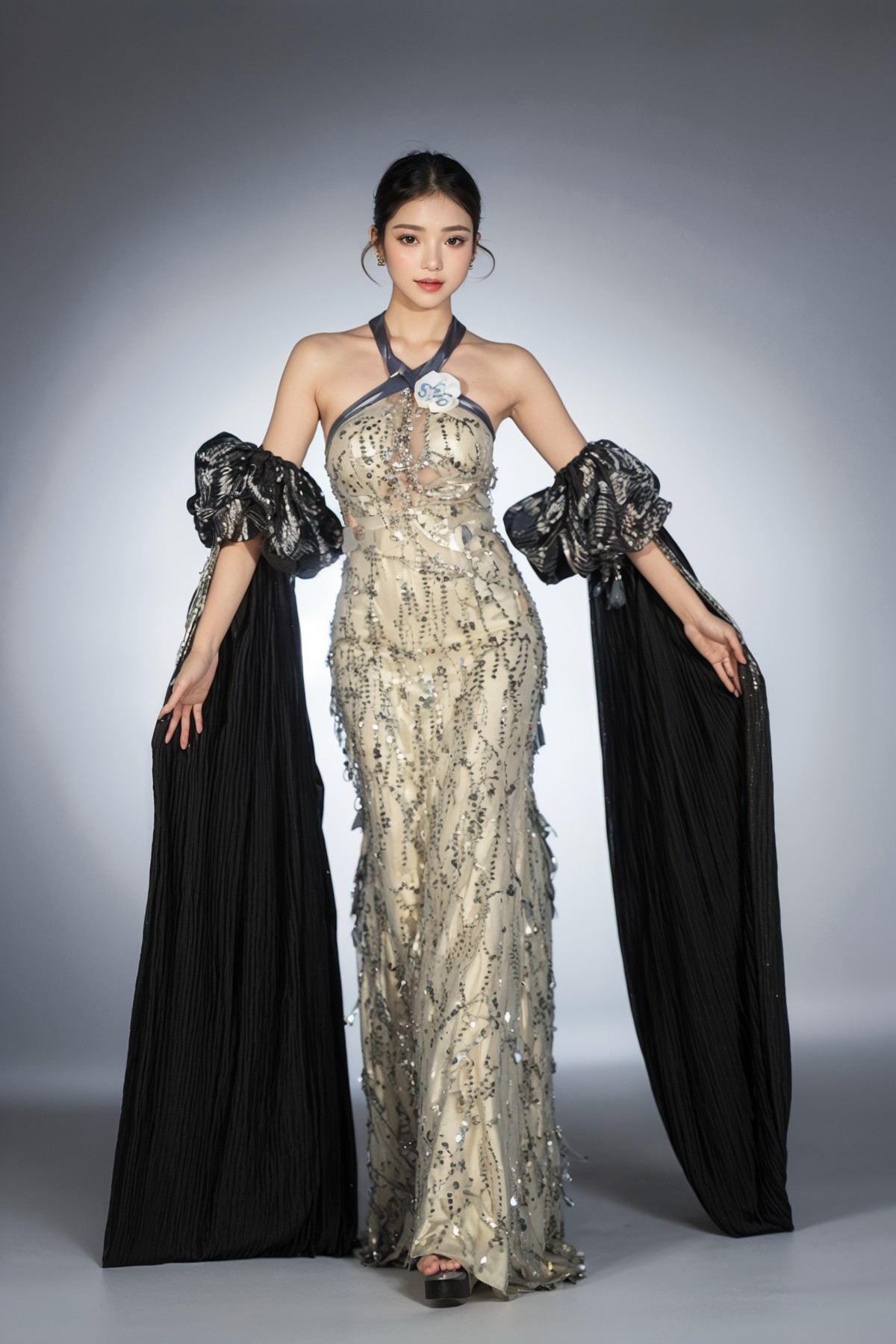 Bộ sưu tập "Dạ hội" của nhà thiết kế Đinh Bách Đạt là những mẫu váy lộng lẫy, kết hợp phong cách dạ hội phương Tây với các chi tiết Á Đông.