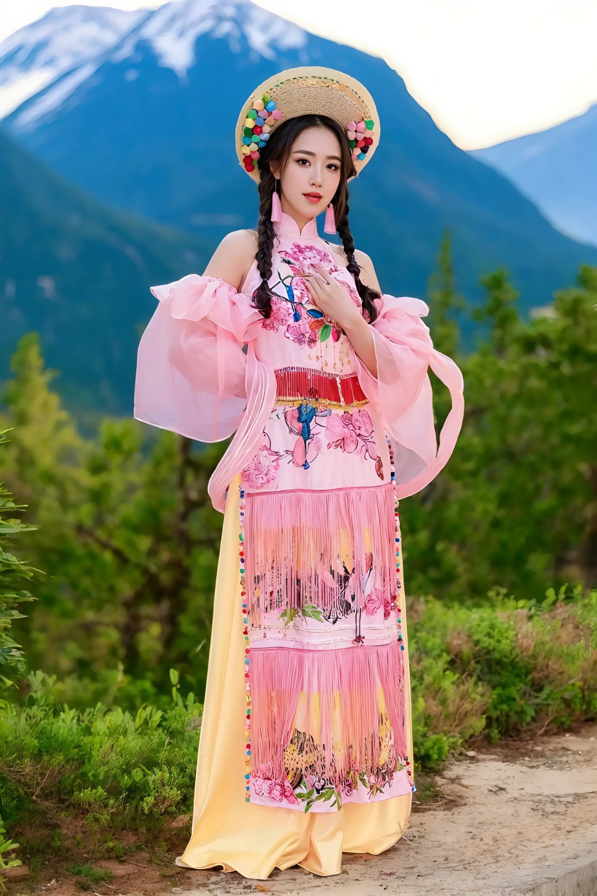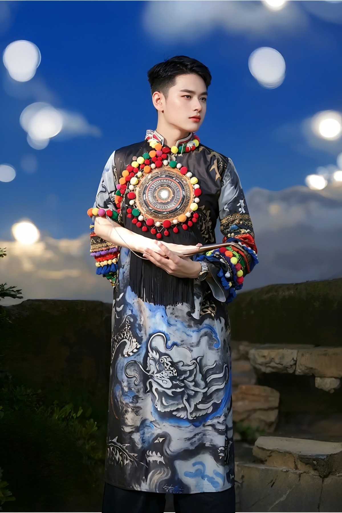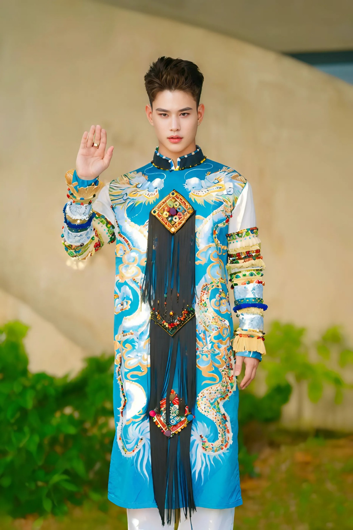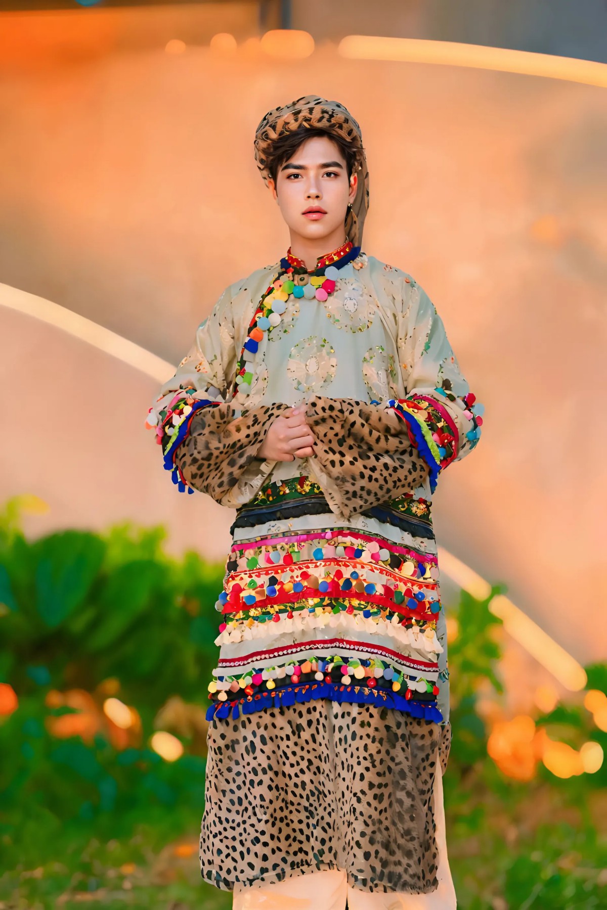 NTK Đinh Bách Đạt khai thác họa tiết thổ cẩm đặc trưng của các dân tộc như Mông, Dao, Thái… kết hợp với phom dáng áo dài truyền thống, tạo nên sự giao thoa giữa bản sắc và hiện đại.