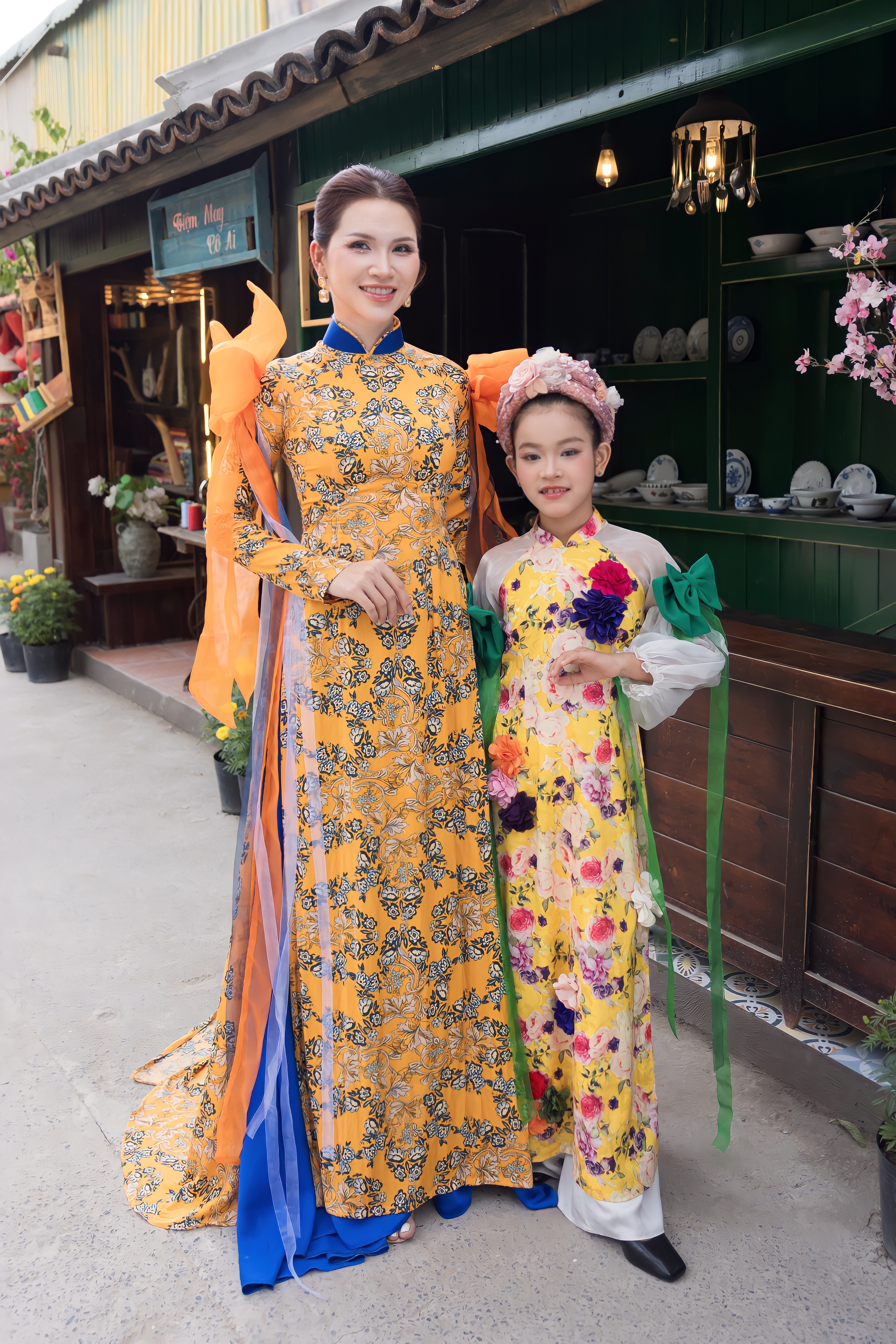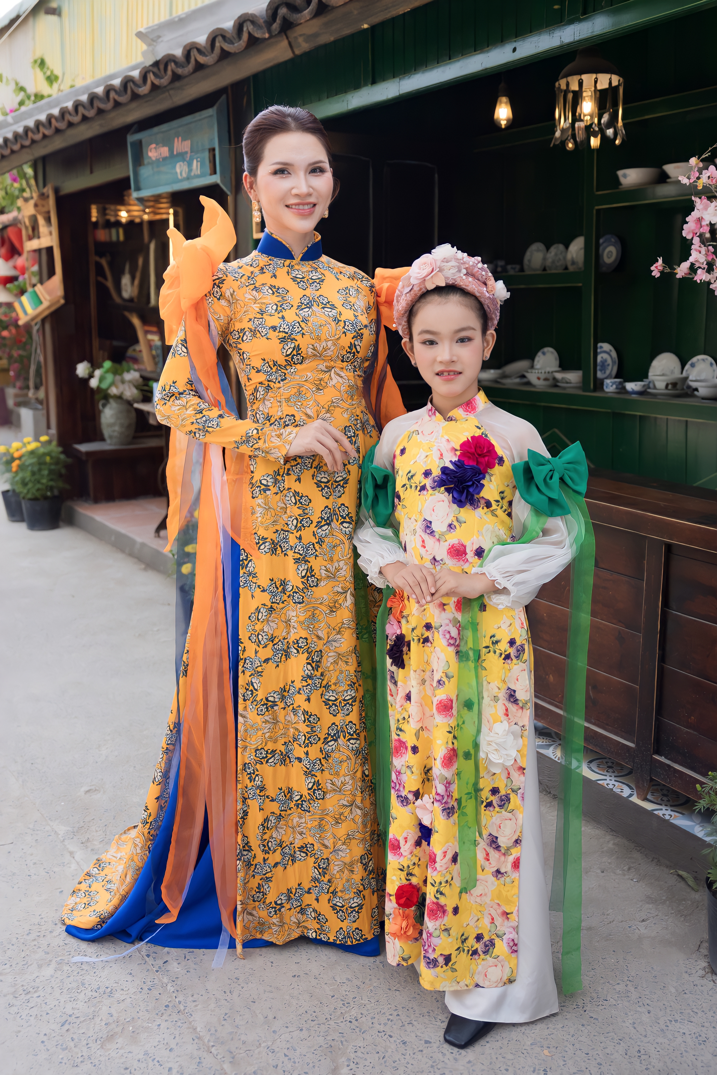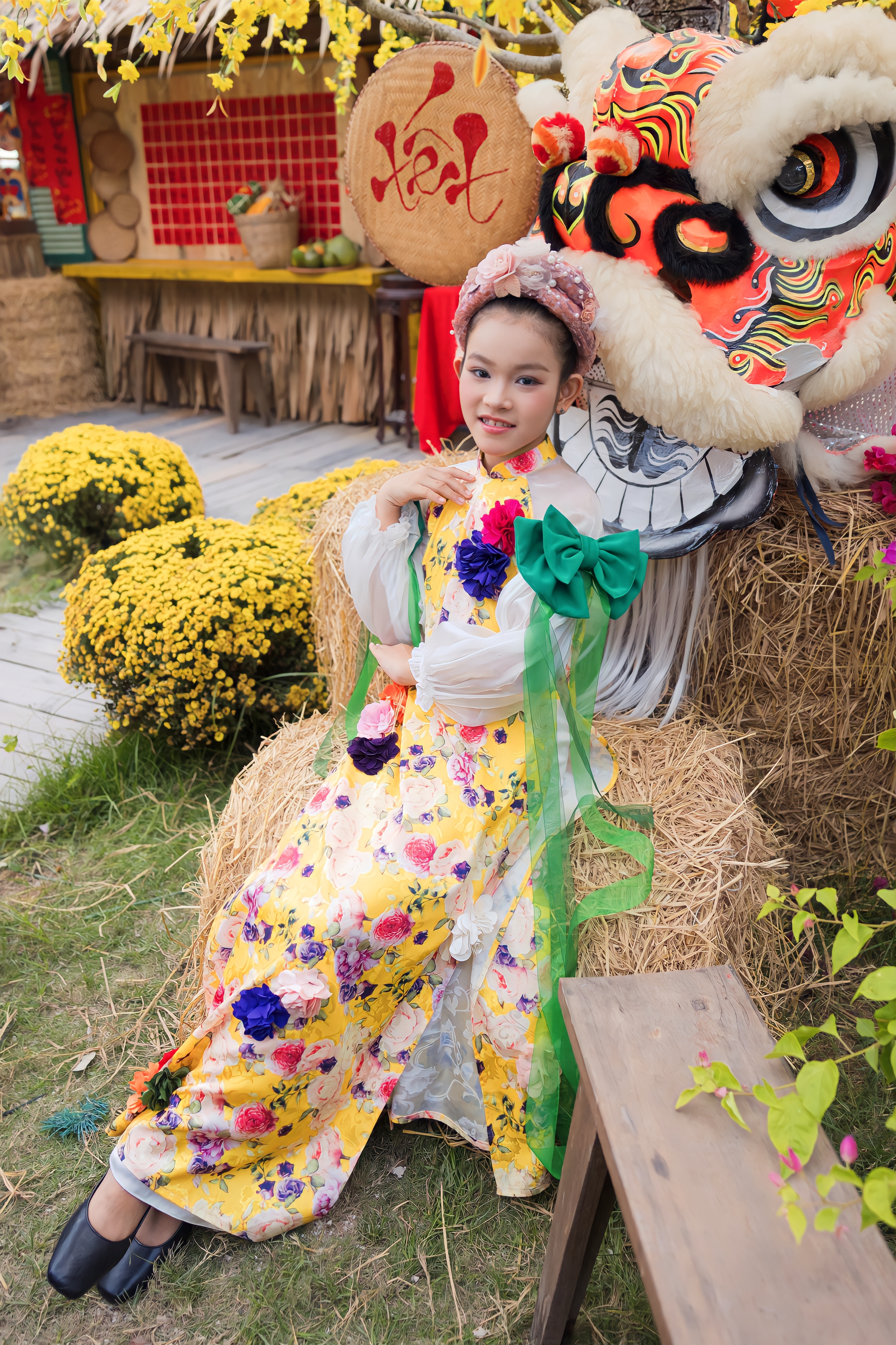 Trước khi ánh đèn sân khấu chính thức bật sáng, những khoảnh khắc "backstage" của Bảo Anh đã đủ sức "đốn tim" người hâm mộ. Cô bé diện thiết kế áo dài cách tân với tông vàng rực rỡ – màu sắc chủ đạo của mùa xuân và sự thịnh vượng toát lên vẻ đẹp trong veo như sương mai. Điểm nhấn đắt giá là chiếc mấn đội đầu được kết đính cầu kỳ với những bông hoa gam màu pastel nhẹ nhàng, tôn lên khuôn mặt thanh tú và đôi mắt sáng ngời thông minh. Dù đang trong giai đoạn chuẩn bị căng thẳng, Bảo Anh vẫn giữ được thần thái rạng rỡ, nụ cười nhẹ nhàng nhưng đầy tự tin, cho thấy sự chuyên nghiệp của một người mẫu nhí đã quen với áp lực sân khấu.