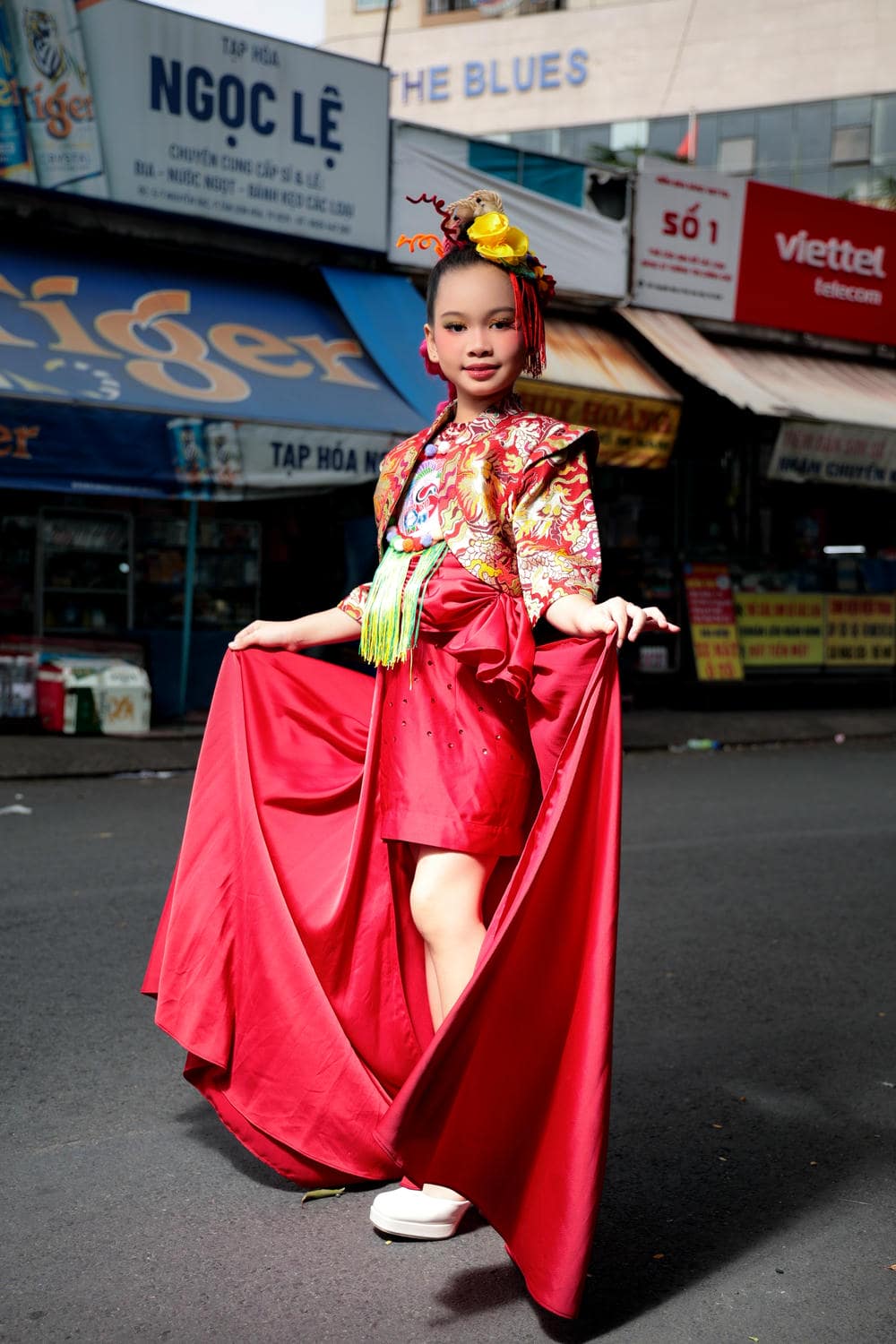 Điểm độc đáo của bộ ảnh lần này chính là việc đưa trang phục vương giả ra bối cảnh phố thị mộc mạc. Thanh Trúc đã vô cùng khéo léo khi thể hiện những cú xoay tà váy (spin) đầy kịch tính ngay giữa những bảng hiệu cửa hàng và nhịp sống hối hả, tạo nên một sự tương phản thị giác đầy tính nghệ thuật.