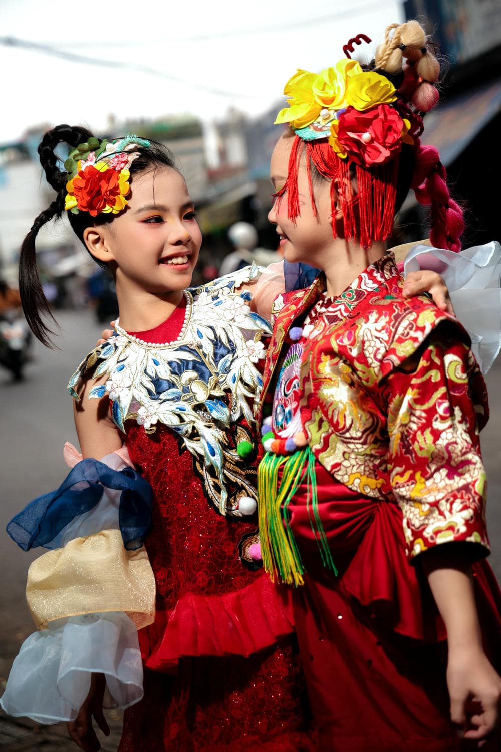 Hình 4: Sự đối lập thú vị giữa trang phục lộng lẫy và bối cảnh đường phố mộc mạc