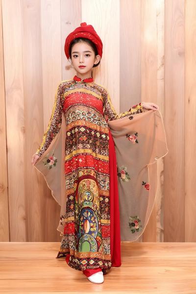ÁO DÀI TAY BÍ HÌNH HOA SEN - Size XS