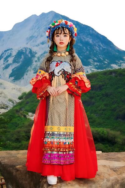 ÁO DÀI THỔ CẨM HỌA TIẾT HOA TAY VOAN - Size S