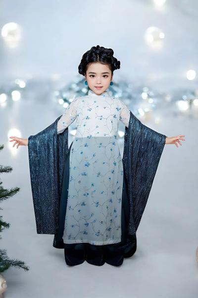 ADK040 - ÁO DÀI TRÌNH DIỄN HOA NHÍ DẢI TAY