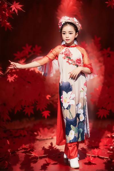 ÁO DÀI TRÌNH DIỄN HÌNH IN HÌNH RỒNG VÀ HOA SEN - Size S