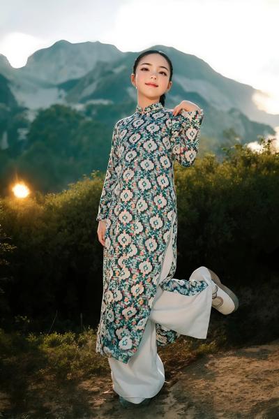 ÁO DÀI GẤM IN HỌA TIẾT - Size M