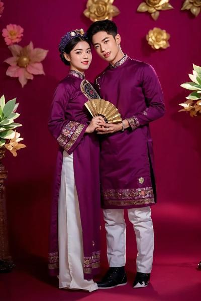 ÁO DÀI CẶP ĐÔI VIỀN HOA VĂN