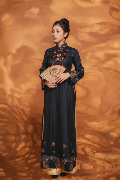 ÁO DÀI CUNG ĐÌNH HOA VĂN NỔI