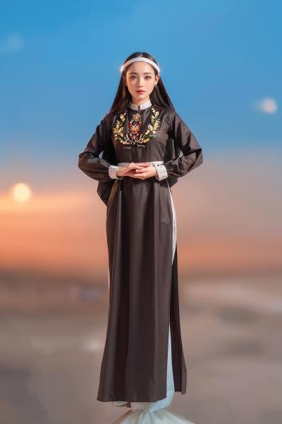 ÁO DÀI HOÀNG KIM HỌA TIẾT PHỦ BẠC - Size XL