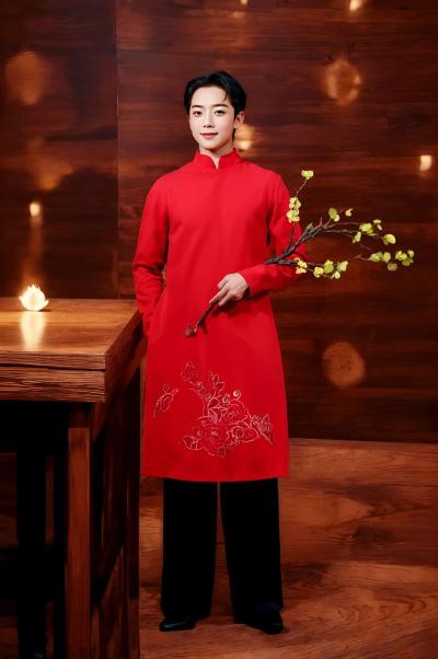 ÁO DÀI TRÌNH DIỄN ĐUÔI TÀ HOA ĐỎ - Size S