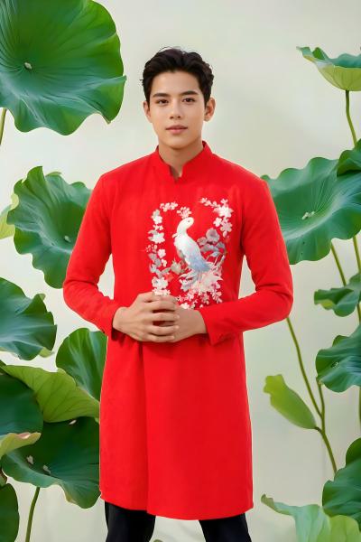 ÁO DÀI LỤA THỔ CẨM CỔ VOAN TRÒN - Size M