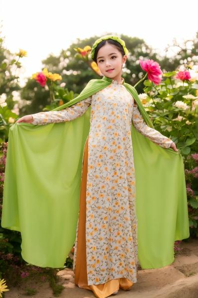 ÁO DÀI HOA NHÍ TAY CHOÀNG