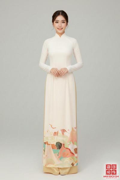 ÁO DÀI LỤA VẼ HÌNH TẾT - Size M