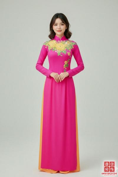 ÁO DÀI CUNG ĐÌNH HÌNH PHƯỢNG HOA HỒNG - Size M