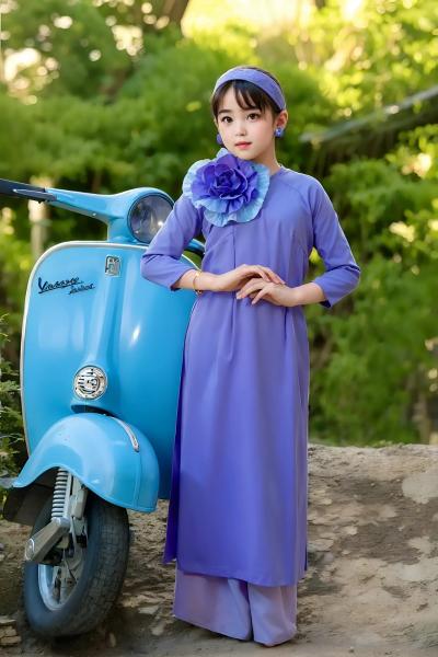 ÁO DÀI LỤA IN HÌNH HOA - Size S