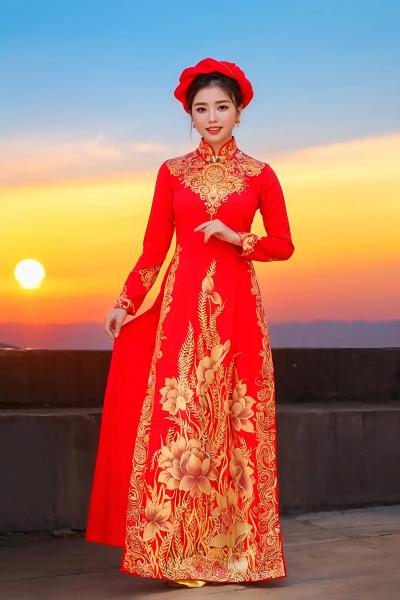 ÁO DÀI LỤA HÌNH SEN VÀNG