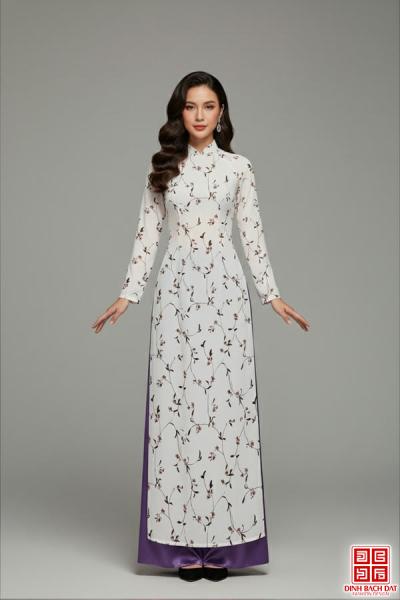 ÁO DÀI LỤA HÌNH ĐÔI CHIM ĐẬU HOA MAI - Size M
