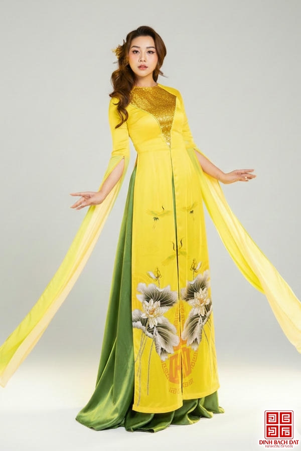 ÁO DÀI LỤA HOA SEN TAY DÀI
