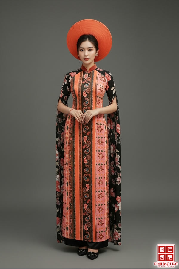 ÁO DÀI LỤA HỌA TIẾT THỔ CẨM DỌC