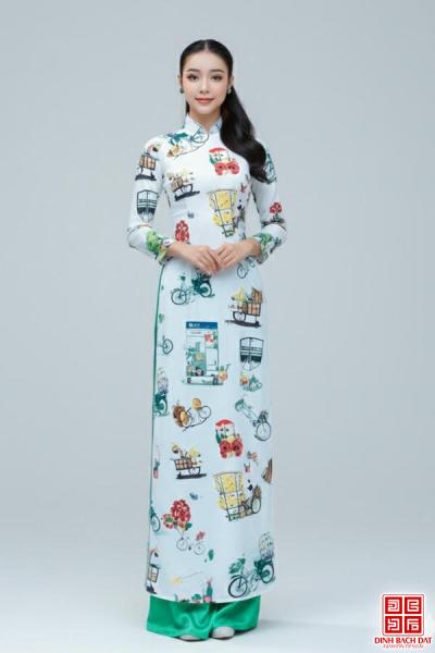 ÁO DÀI LỤA IN HÌNH XE ĐẠP