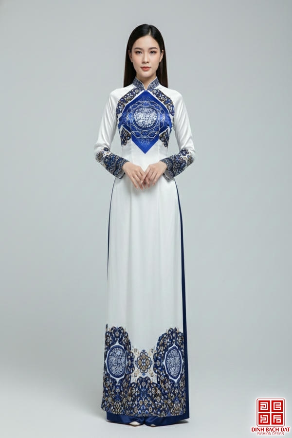ÁO DÀI LỤA IN HỌA TIẾT GỐM