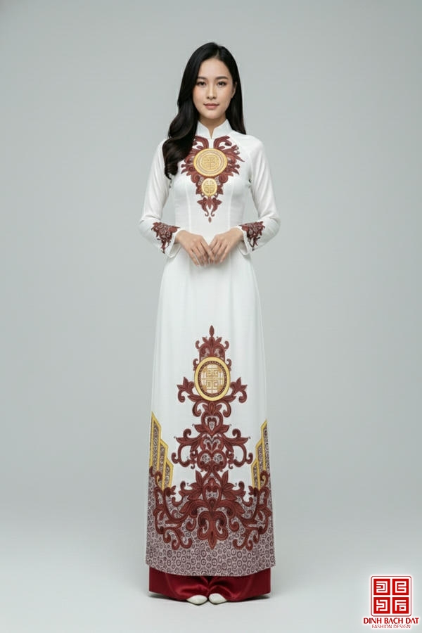 ÁO DÀI LỤA IN HOA VĂN