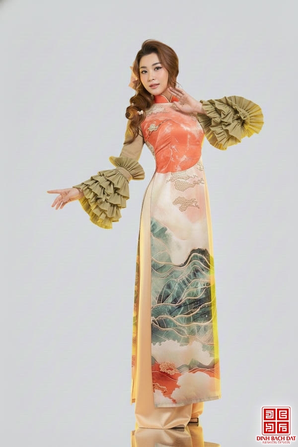 ÁO DÀI LỤA IN NÚI TAY TẦNG