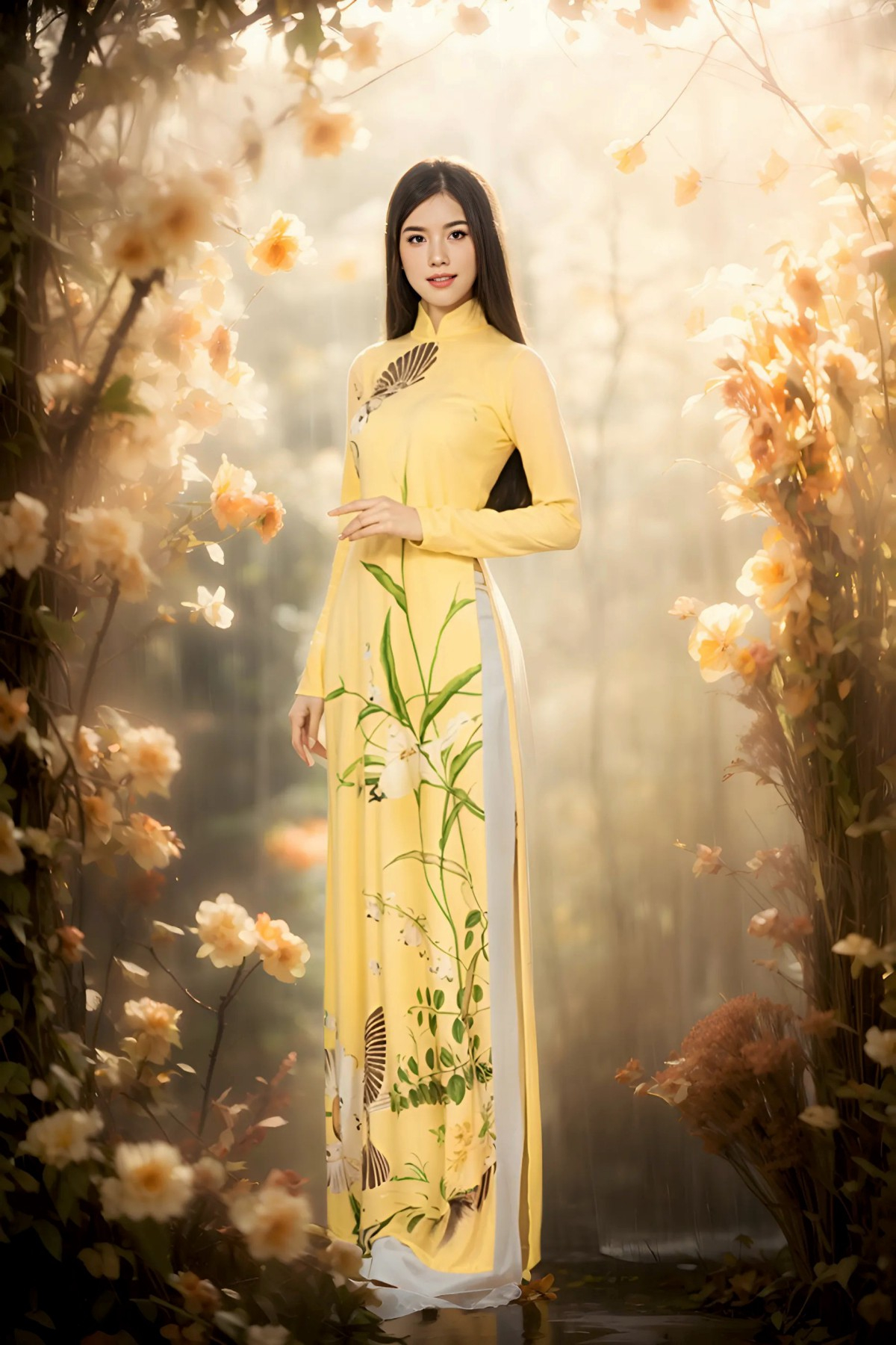 ÁO DÀI TRÌNH DIỄN HỌA TIẾT HOA DÁT VÀNG - Size S