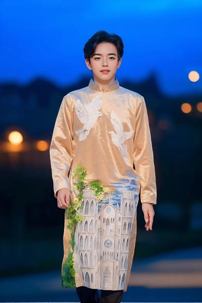 ÁO DÀI NHUNG HÌNH DANH LAM THẮNG CẢNH