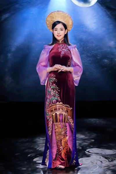 ÁO DÀI NHUNG TAY VOAN HỌA TIẾT