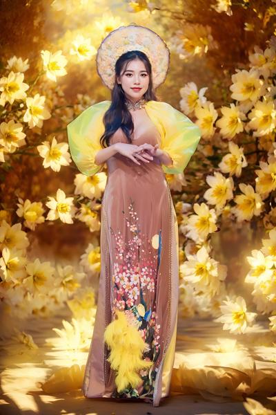 ÁO DÀI TRÌNH DIỄN HOA SEN TAY XẺ - Size S