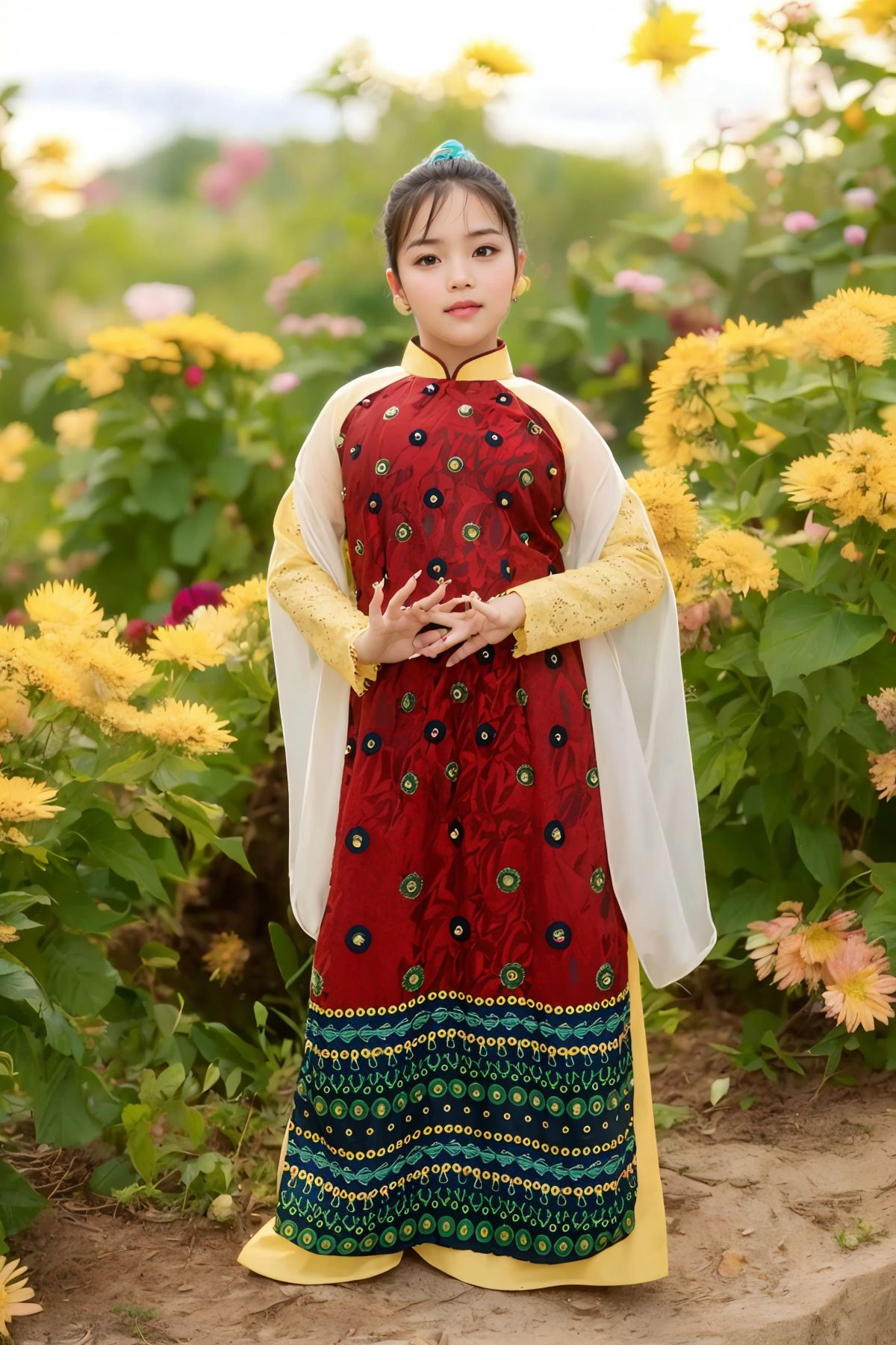 ÁO DÀI TAY ĐÍNH VOAN XẺ