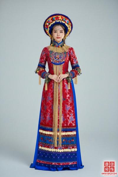 ÁO DÀI THỔ CẨM VÒNG TRÒN ĐA SẮC TÀ HỌA TIẾT HOA
