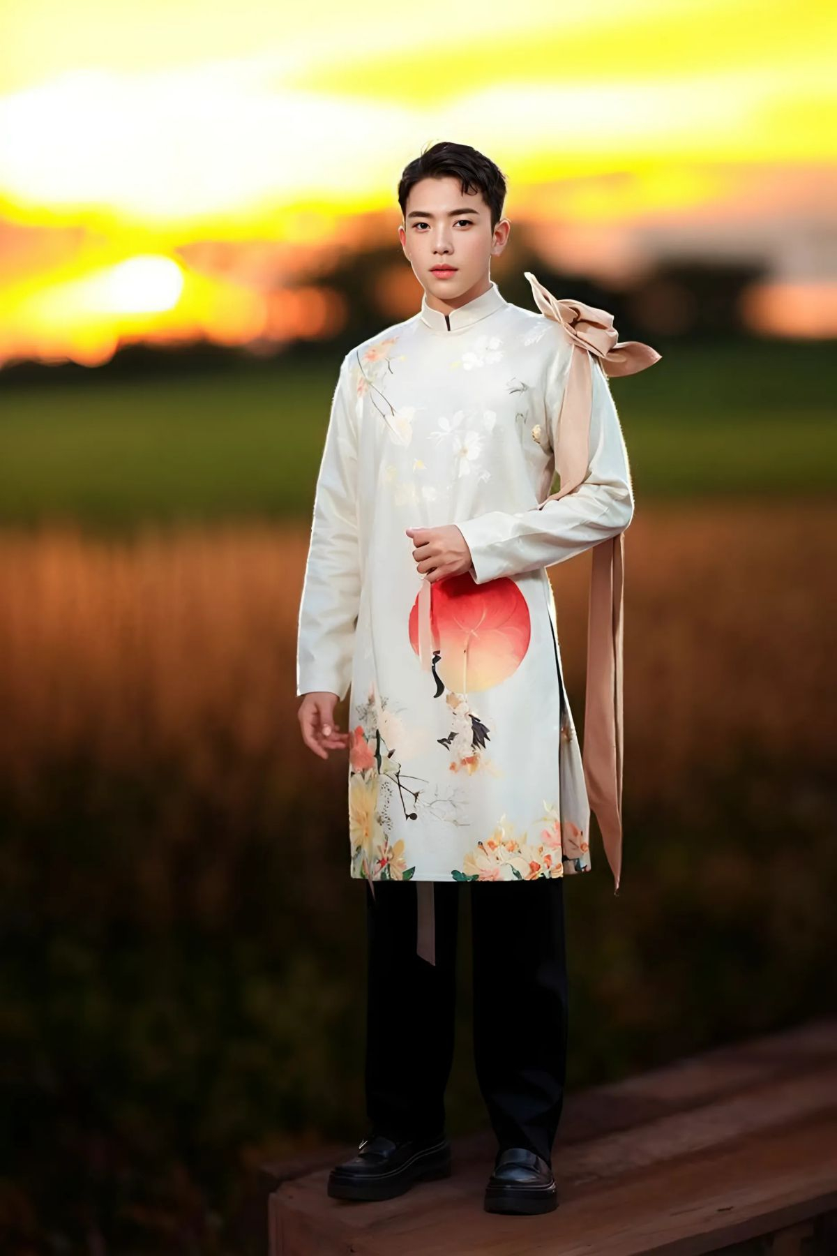 ÁO DÀI ĐÔI HỌA TIẾT ĐỐI XỨNG - Size M