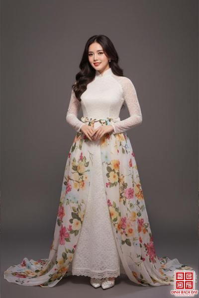 ÁO DÀI TRÌNH DIỄN ĐUÔI TÀ HOA XANH LÁ