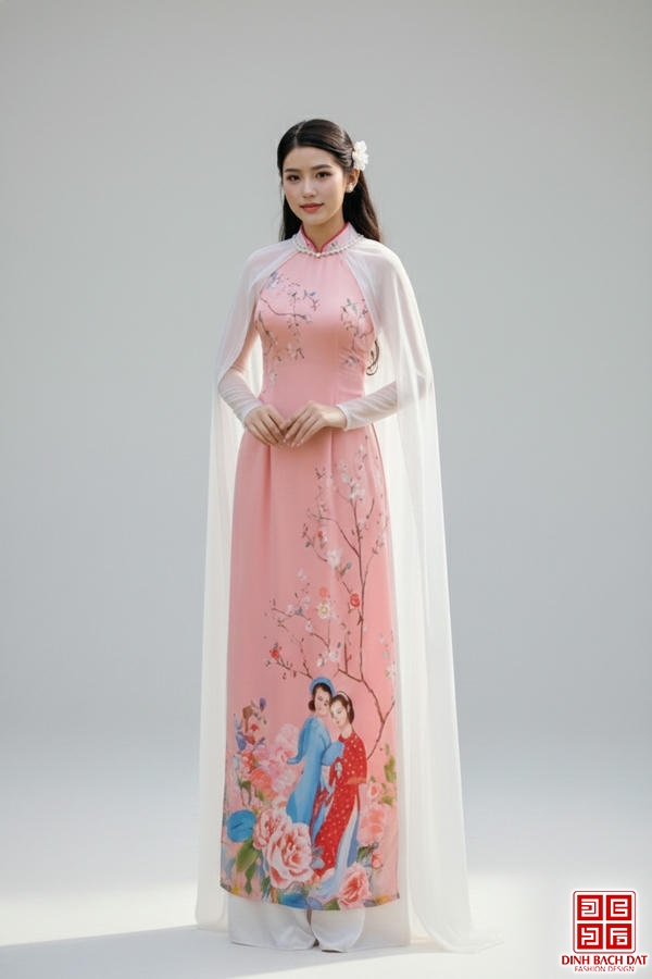 ÁO DÀI TRÌNH DIỄN HÌNH CÔ GÁI VÀ HOA ĐÀO