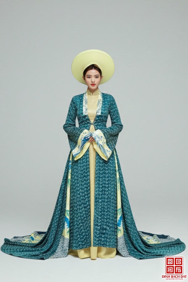 ÁO DÀI TRÌNH DIỄN HOA NHÍ HÌNH QUẠT CÂY TRE