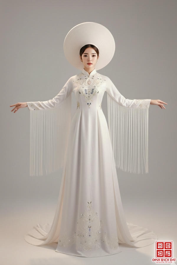 ÁO DÀI TRÌNH DIỄN HỌA TIẾT ĐỐI XỨNG ĐÍNH NGỌC TRAI