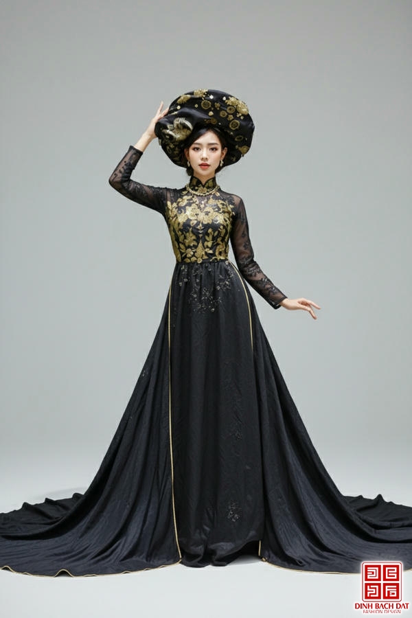 ÁO DÀI TRÌNH DIỄN HỌA TIẾT ĐỐI XỨNG KIM SA