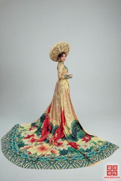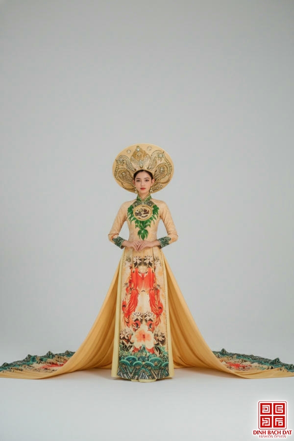 ÁO DÀI TRÌNH DIỄN HỌA TIẾT HOA SEN CHIM PHƯỢNG