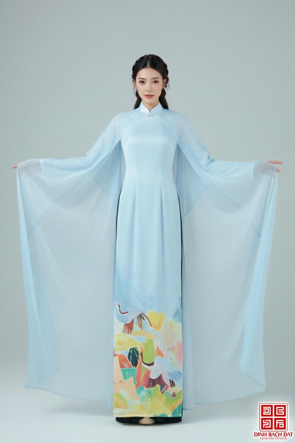 ÁO DÀI TRÌNH DIỄN IN HÌNH CHIM HẠC