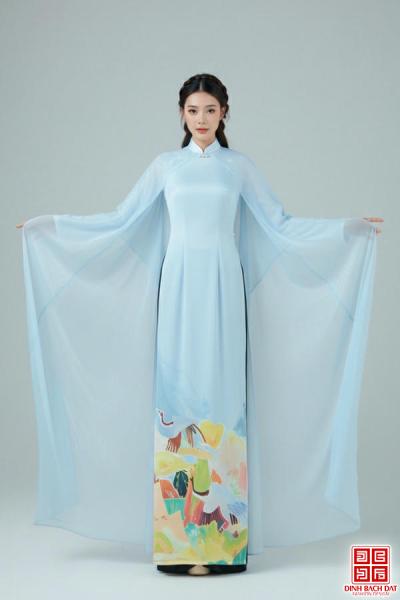 ÁO DÀI CHIFFON VẼ MẪU ĐƠN - Size M