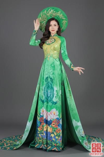 ÁO DÀI TRÌNH DIỄN IN HÌNH QUY VÀ HOA SEN