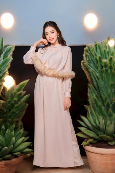 ÁO DÀI TRƠN MÀU PHỐI VIỀN HOA