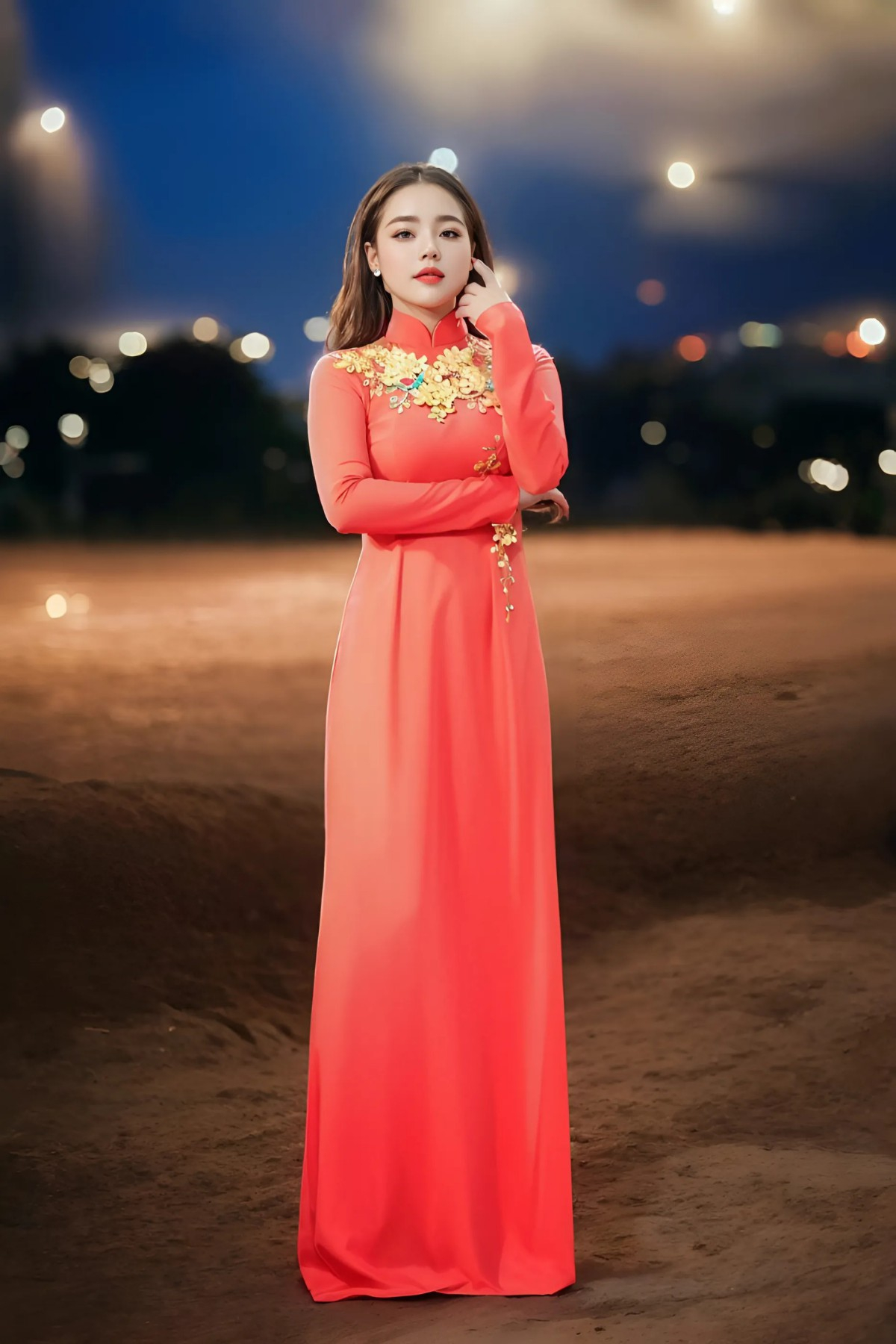 ÁO DÀI TRÌNH DIỄN HỌA TIẾT ĐÍNH HẠT KẾT ĐÁ - Size S