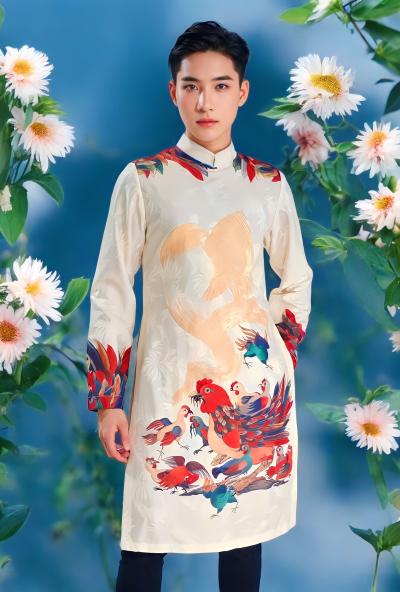 ÁO DÀI VẼ TRANH ĐÀN GÀ